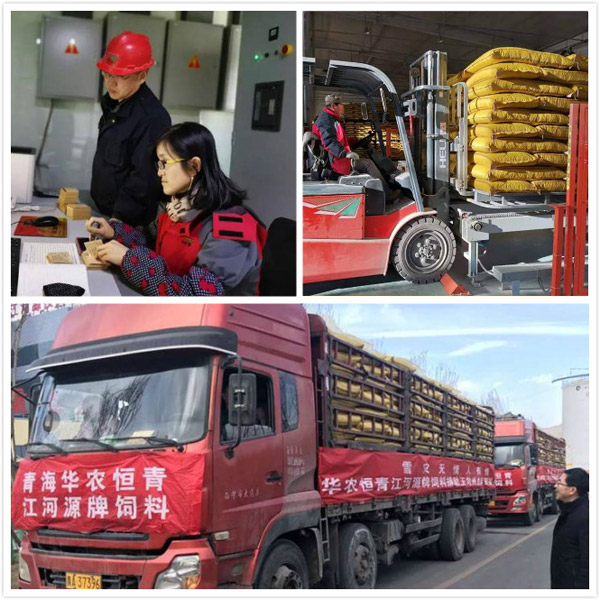 春节保障期间,生产车间每天以16小时的工作量倒班生产。2019年2月4日,华农恒青青海基地率先向玉树受灾地区捐赠50吨抗灾颗粒料。一辆辆满载饲料的车发往灾区,先后累计950吨抗灾饲料分批运往受灾前线送达到了受灾牧民手中。