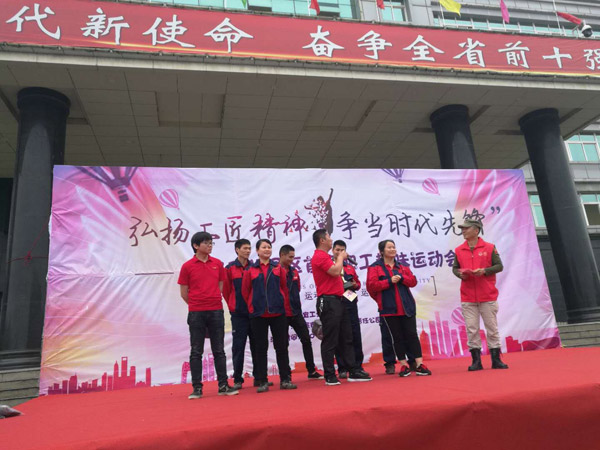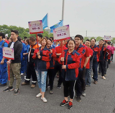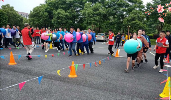 4月27日,分宜工业园区首届职工 “迎五一”趣味运动会在园区办公楼前广场举行,本次大赛分宜县所有企业各派一队以上人员,好几个公司直接派了3个队或4个队。新余基地派出恒青一队和恒青二队两只队伍参赛,每个队伍8名队员,且每队必须要有2名女队员。活动开幕后,随着简单的热身运动,上午的比赛紧张开始了。