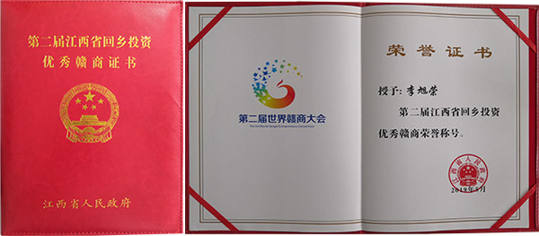 2019年5月19日,第十一届中国中部投资贸易博览会及第二届世界赣商大会在江西南昌开幕。中共江西省委书记、省人大常委会主任刘奇,中共江西省委副书记、省长易炼红等政府各级领导以及来自30多个国家和地区的1000余名赣商赣才齐聚一堂。中共江西省委书记、省人大常委会主任刘奇,中共江西省委副书记、省长易炼红均作主要讲话。会上,江西省政府重点表彰了50名回乡投资优秀赣商,颁发了荣誉证书。其中,华农恒青科技股份有限公司创始人、董事长李旭荣在会上荣获“江西省回乡投资优秀赣商”殊荣!