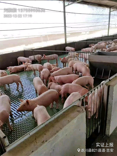 郭老板在遂川县泉江镇养猪,他从事养殖业以来,已有十余年了,在周围的养殖圈内颇有名气。除自身抓小猪育肥外,郭老板还有一个百余头母猪的合伙母猪场,在当地养殖户中有一定的影响力。此前,郭老板一直都是使用其他品牌的饲料,自去年7月份经当地经销商推荐后,开始试用我司饲料产品称猪做实证,实证结果出来后,郭老板对我司饲料品牌十分认可。