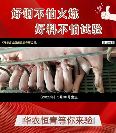 “这批猪的长势非常好,增重明显,华农恒青饲料的喂养效果让人很满意!”陆老板坦言,经得住检验的产品才是好产品,华农恒青饲料口碑和品质都过硬,用起来放心。近期猪价行情虽然不景气,但陆老板始终保持着乐观心态,他称,人们日常饮食中的肉类仍以猪肉为主,养猪等畜牧养殖行业作为一个朝阳行业,永远有前景,不会退出历史舞台,畜牧养殖行业的后续发展仍然可期。后续,陆老板表示,将深化与我司的合作,相互信任,共同成长!