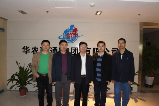 大北农邵根伙董事长、海大薛华董事长、宁波天邦吴天星董事长、兴嘉生物黄逸强董事长一行莅临公司参观指导,并与华农骏通集团李旭荣董事长(右三)合影。