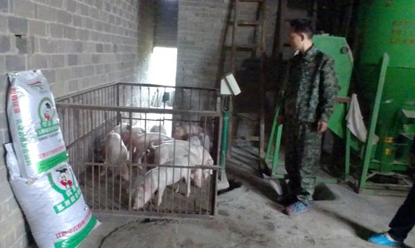 4月25日公司市场部王总冒雨回访了高安市灰埠镇黄家村参加“最美仔猪”养猪比赛的陈见喜老板。